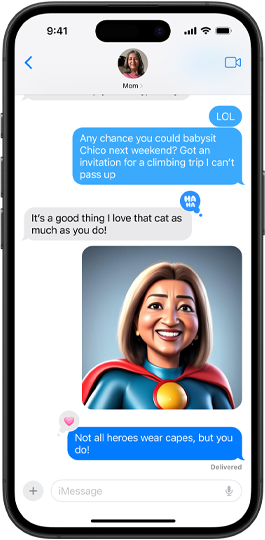 Produce fun, original images with Image Playground right in your apps. Try out styles like animation, illustration and sketch, and discover additional ChatGPT styles. Have even more control when making images inspired by family and friends using Genmoji.3