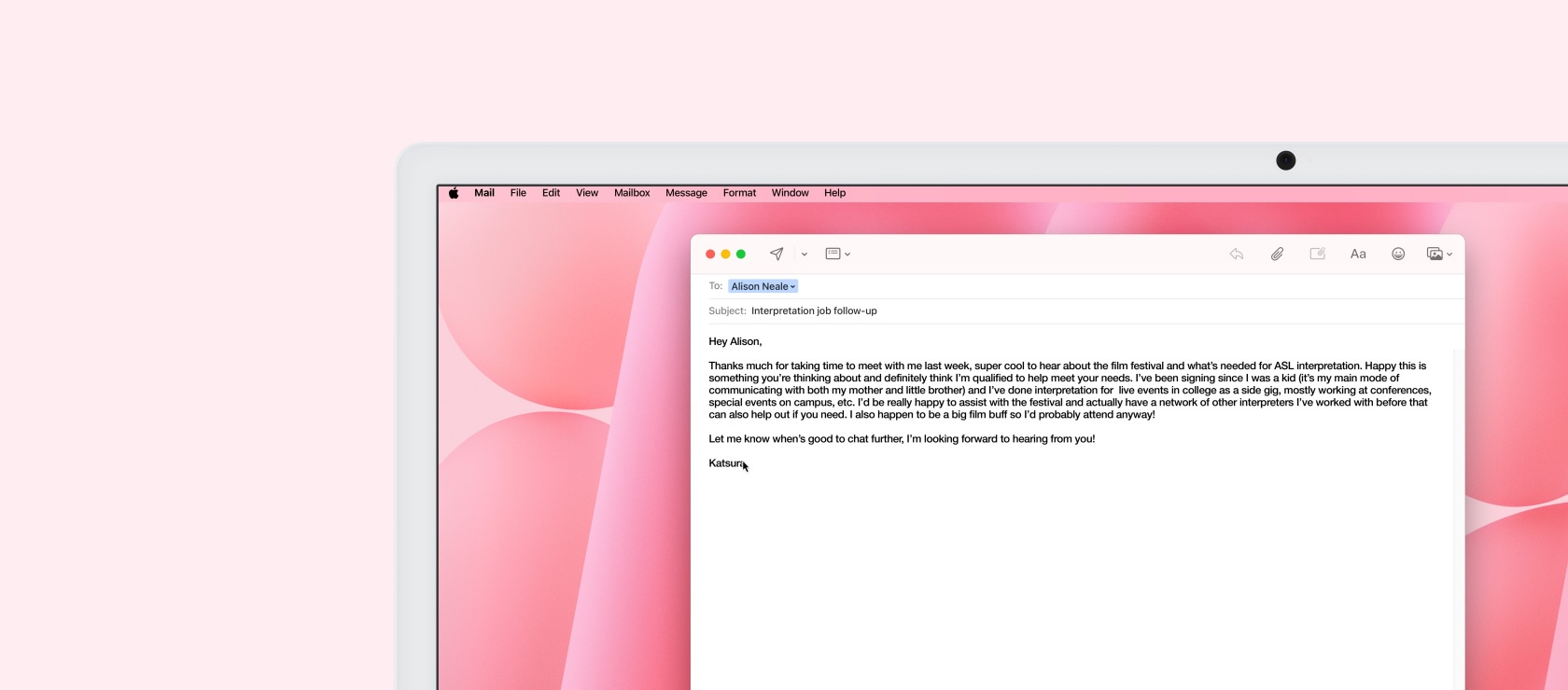 Apple Intelligence is designed to protect your privacy at every step. It’s integrated into the core of your Mac through on-device processing. So it’s aware of your personal information without collecting your personal information.