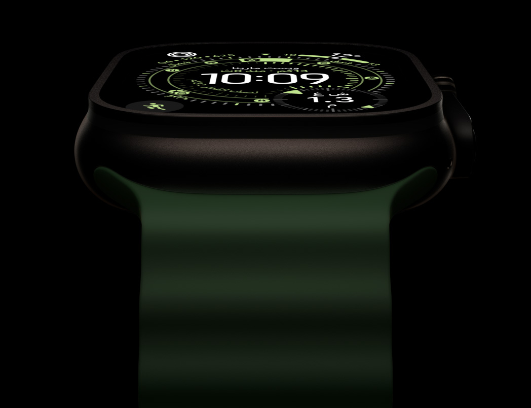 شاشتنا الأكبر والأكثر تطوراً في Apple Watch تصدر المزيد من الضوء مع زوايا رؤية أوسع3، ما يجعلها أكثر سطوعاً وسهولة في القراءة.