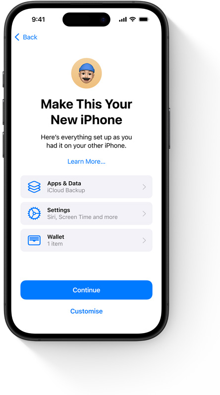 Restore your device or set up a new one from your iCloud backup to seamlessly bring along all your photos, files, contacts, apps, settings and more, so it looks just like your previous one.