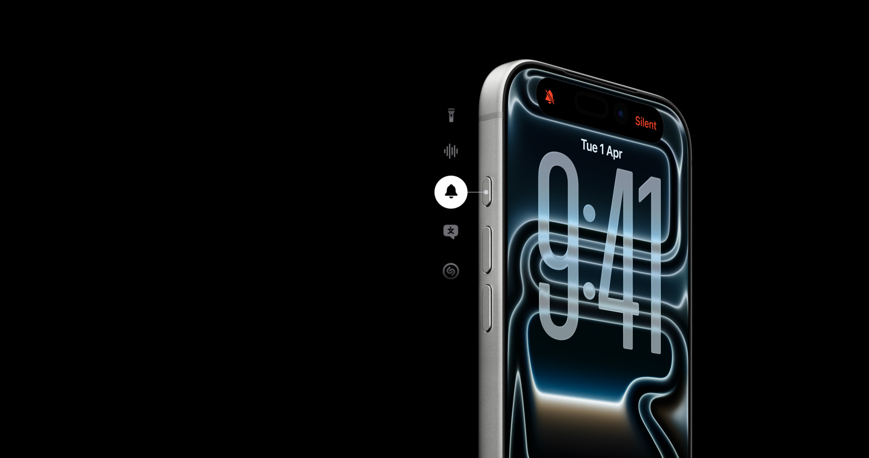 Action button. A customisable fast track to your favourite feature. Long press to launch the action you want — Silent mode, Translation, Shortcuts and more.