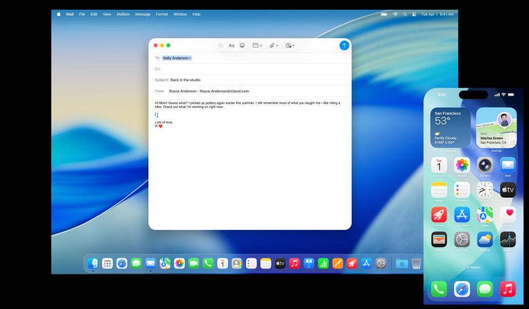 Mac, iPhone, iPad and Apple Watch are amazing on their own. And they’re even more amazing when used together. Thanks to Continuity, your devices work together seamlessly — unlocking a world of powerful features. Start an email on your Mac and finish it on your iPad. Snap a photo on your iPhone and see it appear on your Mac. Or make a call without reaching for your iPhone.1 That’s the magic of Continuity.