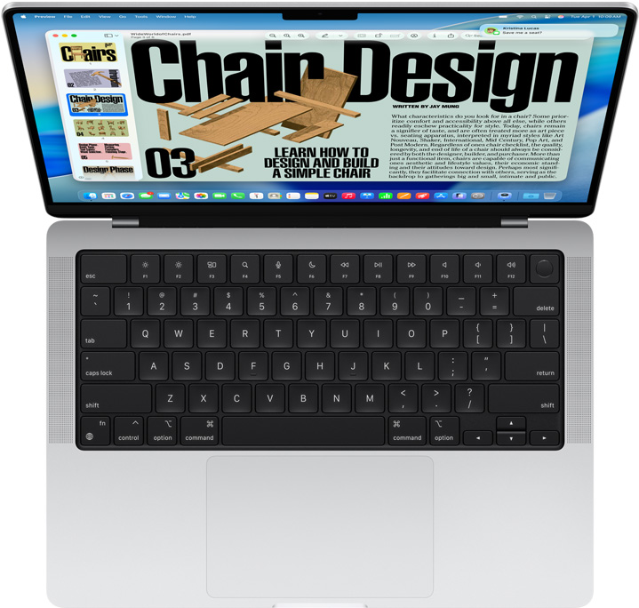 With Continuity Camera, you can take a photo with your iPhone and instantly see it in an email on your Mac. Or scan a receipt with your iPhone and see it appear in Messages — automatically cropped, straightened and ready to share. Continuity Camera works with lots of apps, including Notes, Pages and Keynote. It’s another way iPhone and Mac just click. Continuity Camera also unlocks new capabilities for video calls — like FaceTime and Zoom. You can share a top-down view of your workspace with Desk View. And Centre Stage keeps you in the picture if you move around during your call.